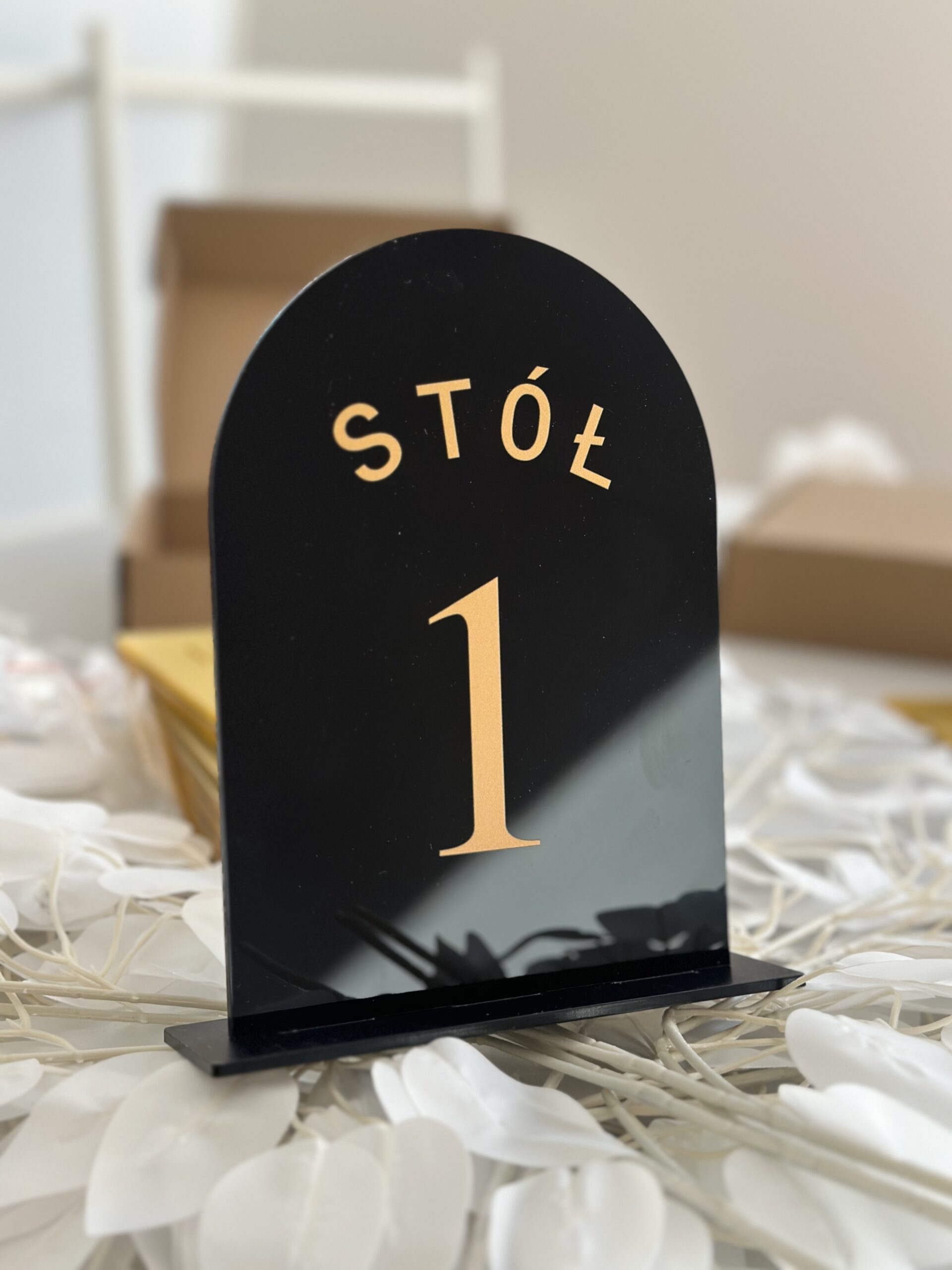 Zestaw eleganckich czarnych numerów na stoły glamour to idealny dodatek na stoły ślubne. Elegancki kolor lustrzanego złota, pozwala na dopasowanie numerków do innych elementów dekoracyjnych. Każdy z numerów osadzony jest na czarnej podstawce, powodującą jego stabilność.