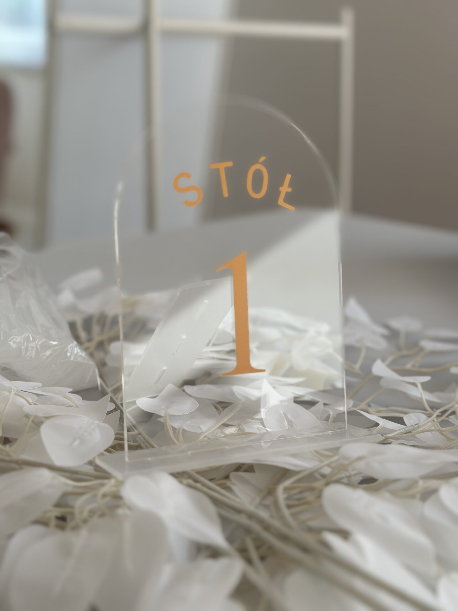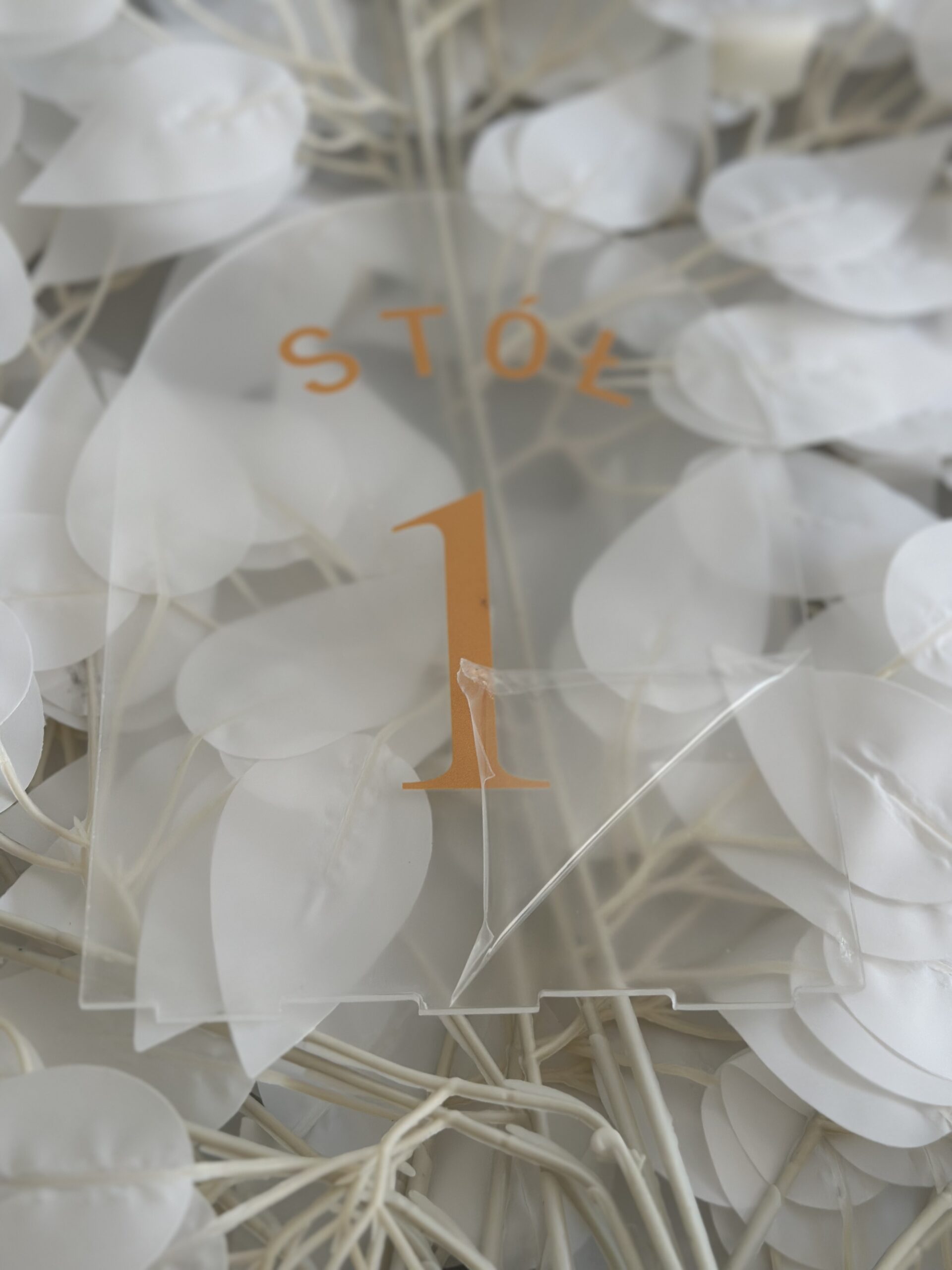 Zestaw transaprentnych numerów ze złotym napisem na stoły 1-15