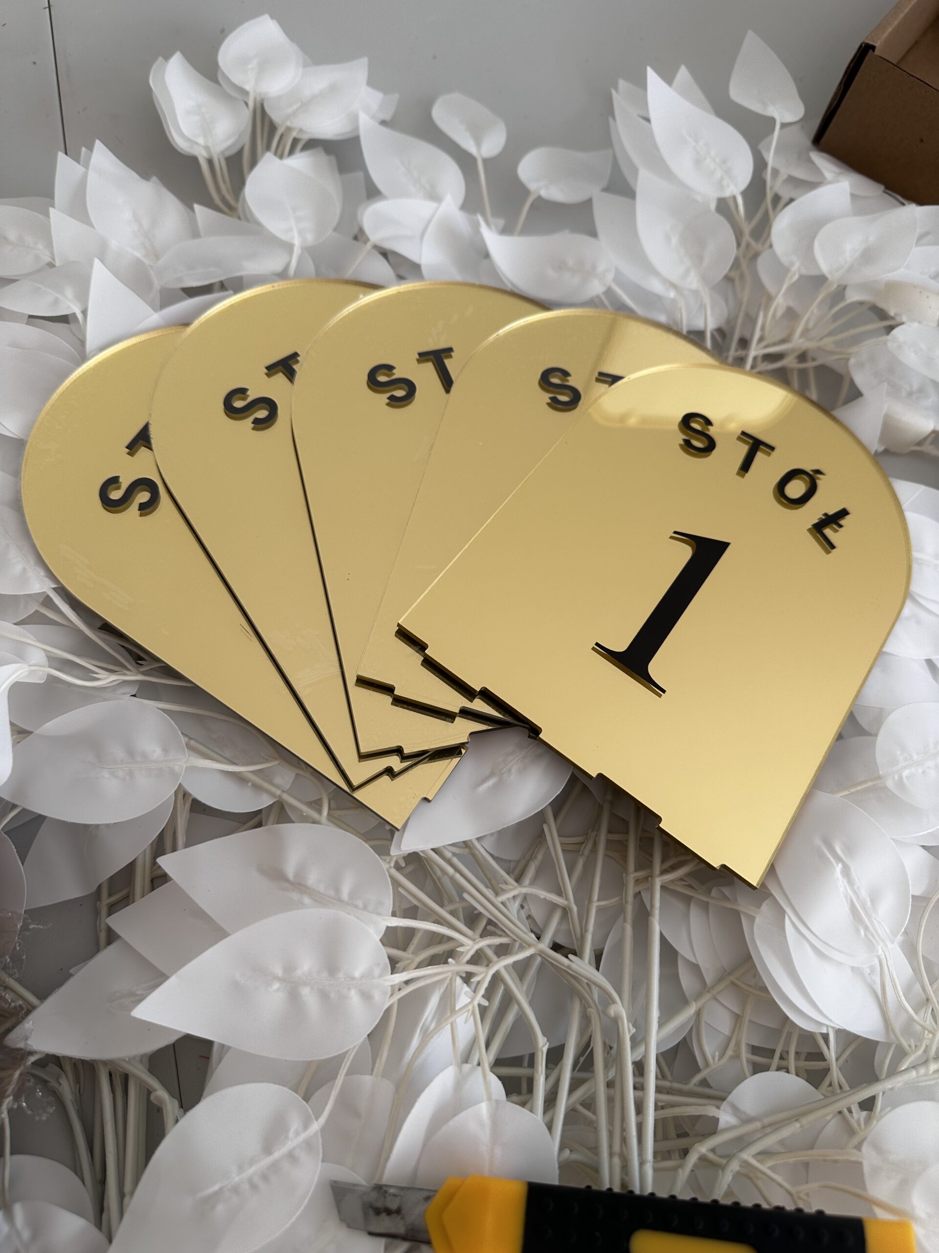 Zestaw złotych numerów z czarnym napisem na stoły 1-15