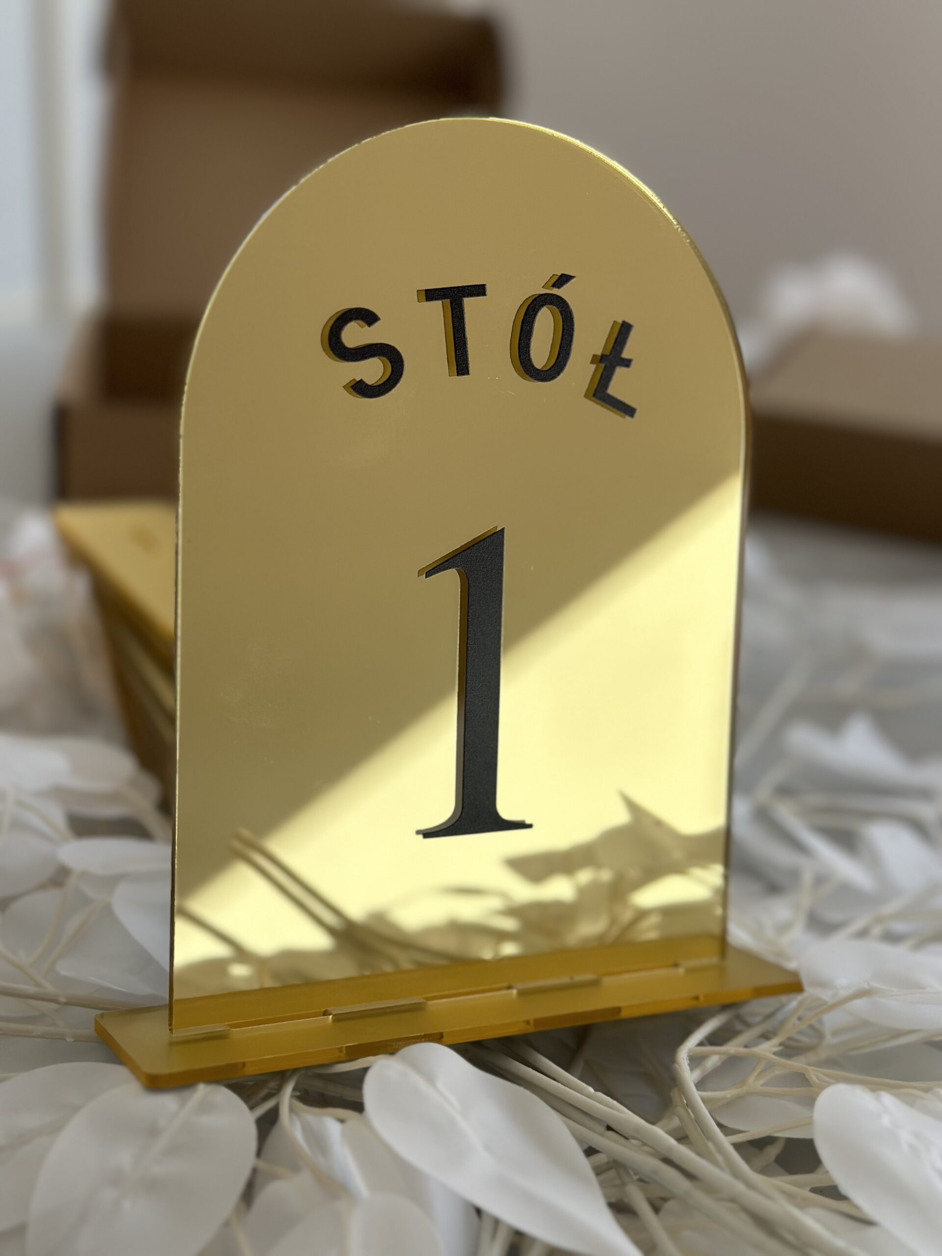 Zestaw eleganckich złotych numerów na stoły glamour to idealny dodatek na stoły ślubne. Elegancki kolor lustrzanego złota, pozwala na dopasowanie numerków do innych elementów dekoracyjnych. Każdy z numerów osadzony jest na lustrzanej złotej podstawce, powodującą jego stabilność.