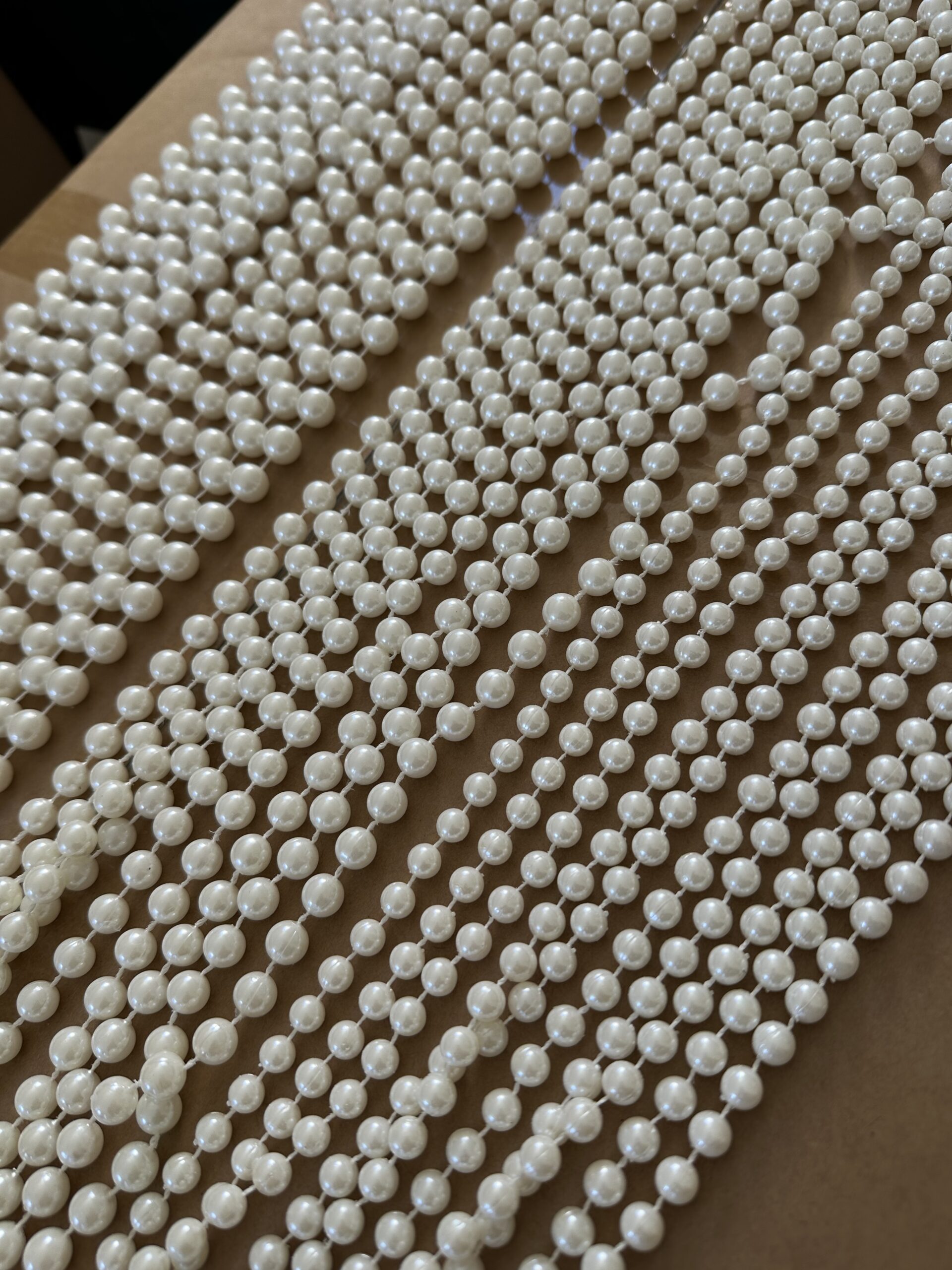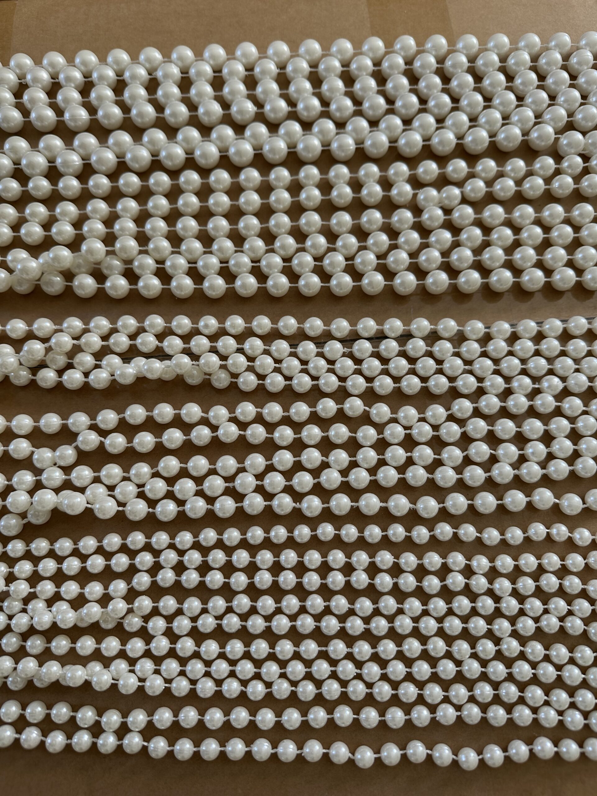 Delikatne, ecru perełki na sznurku, to elegancki dodatek dekoracyjny, który doda uroku i subtelności każdej dekoracji.