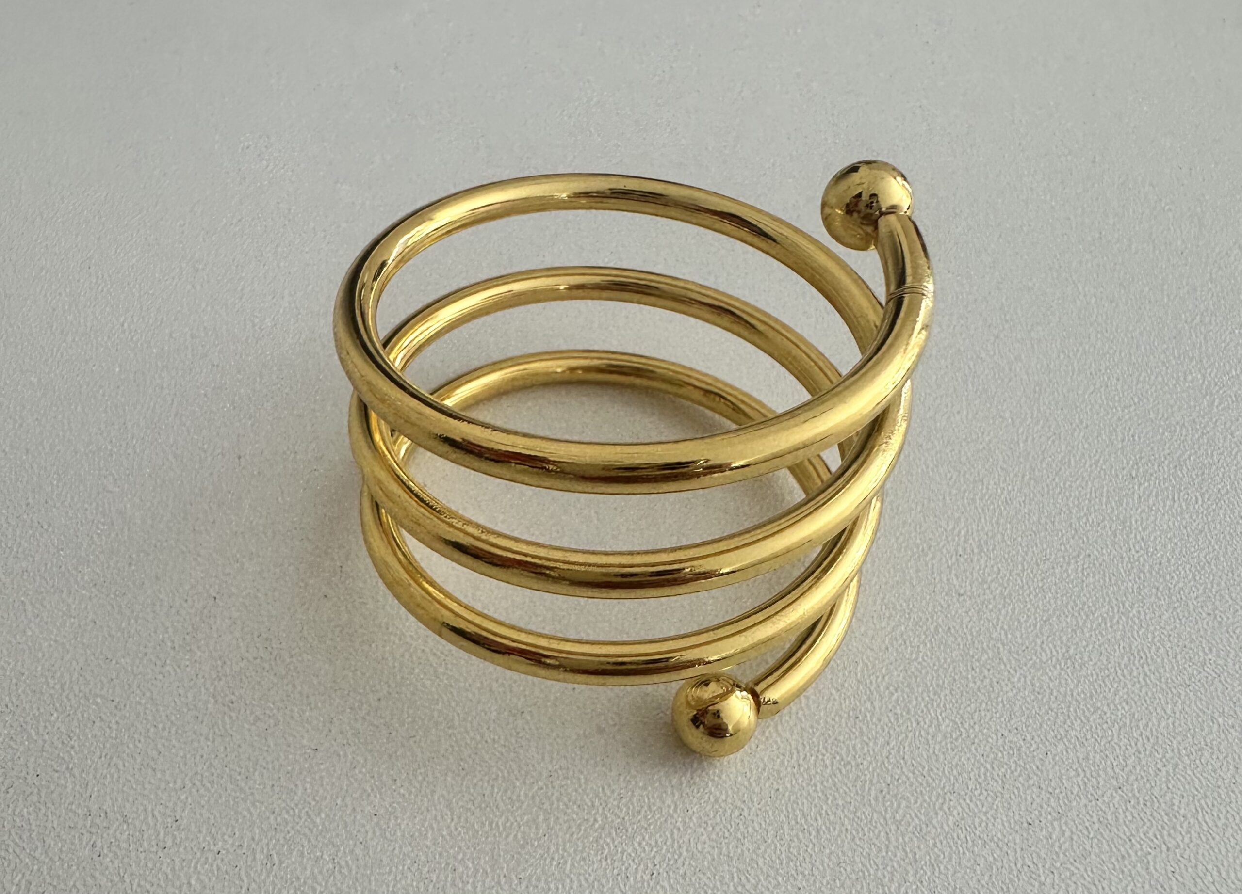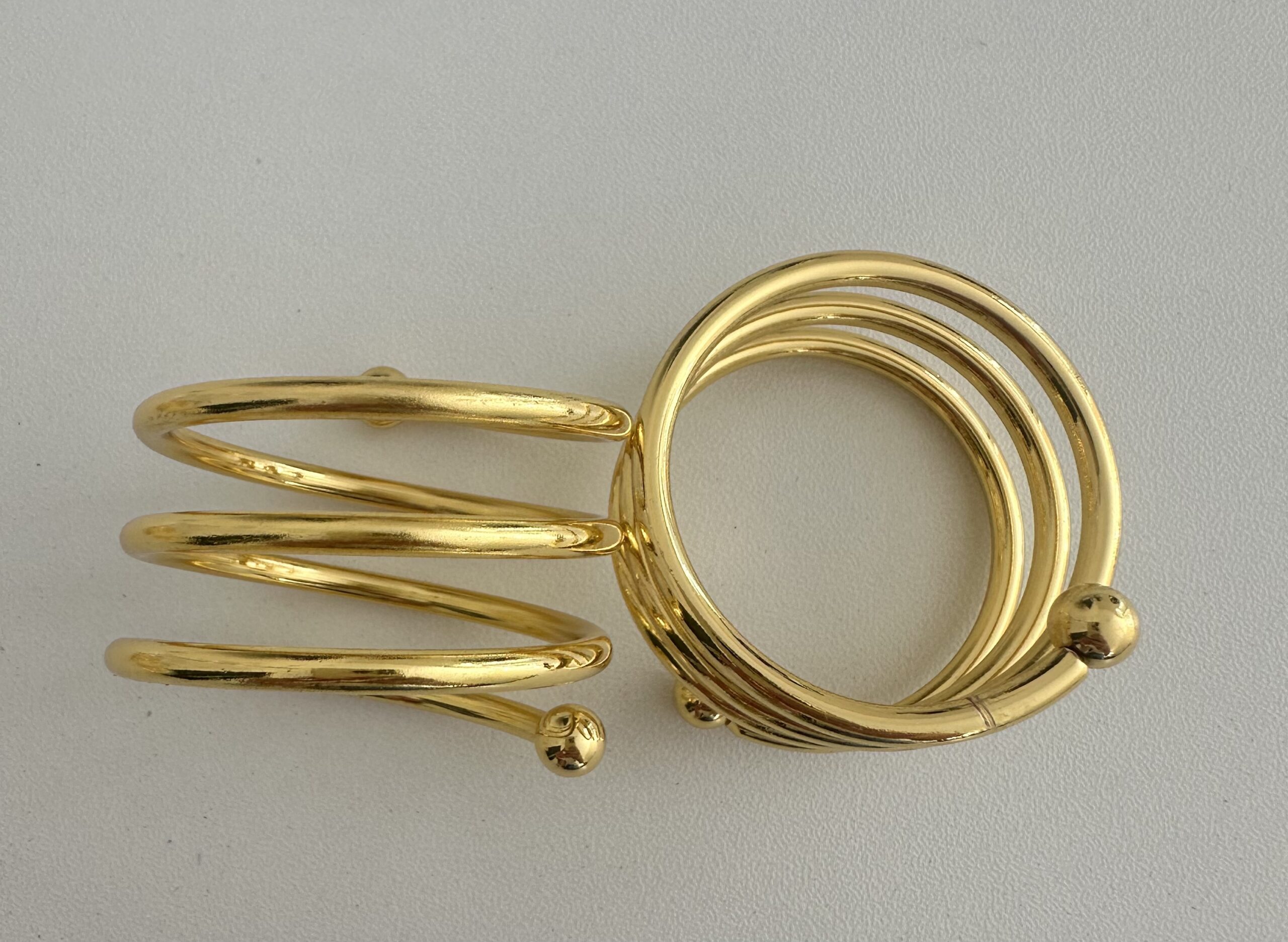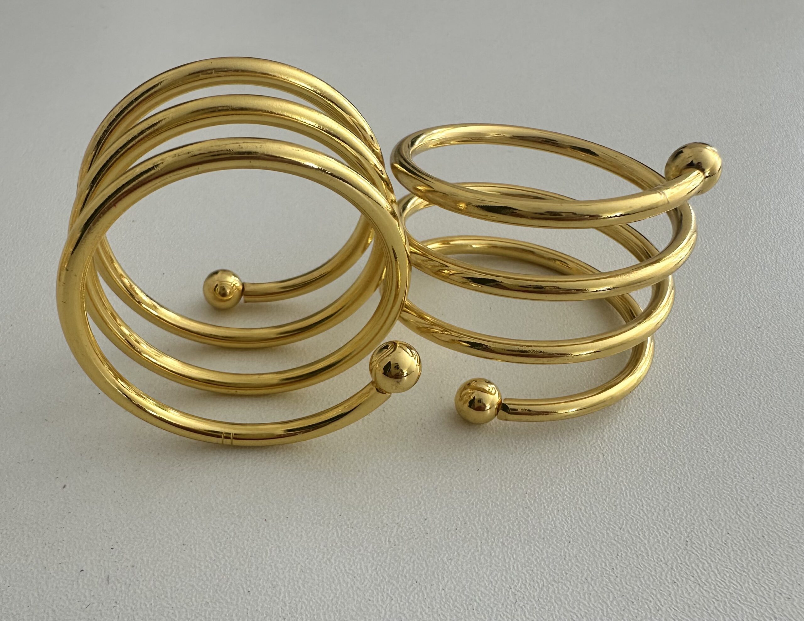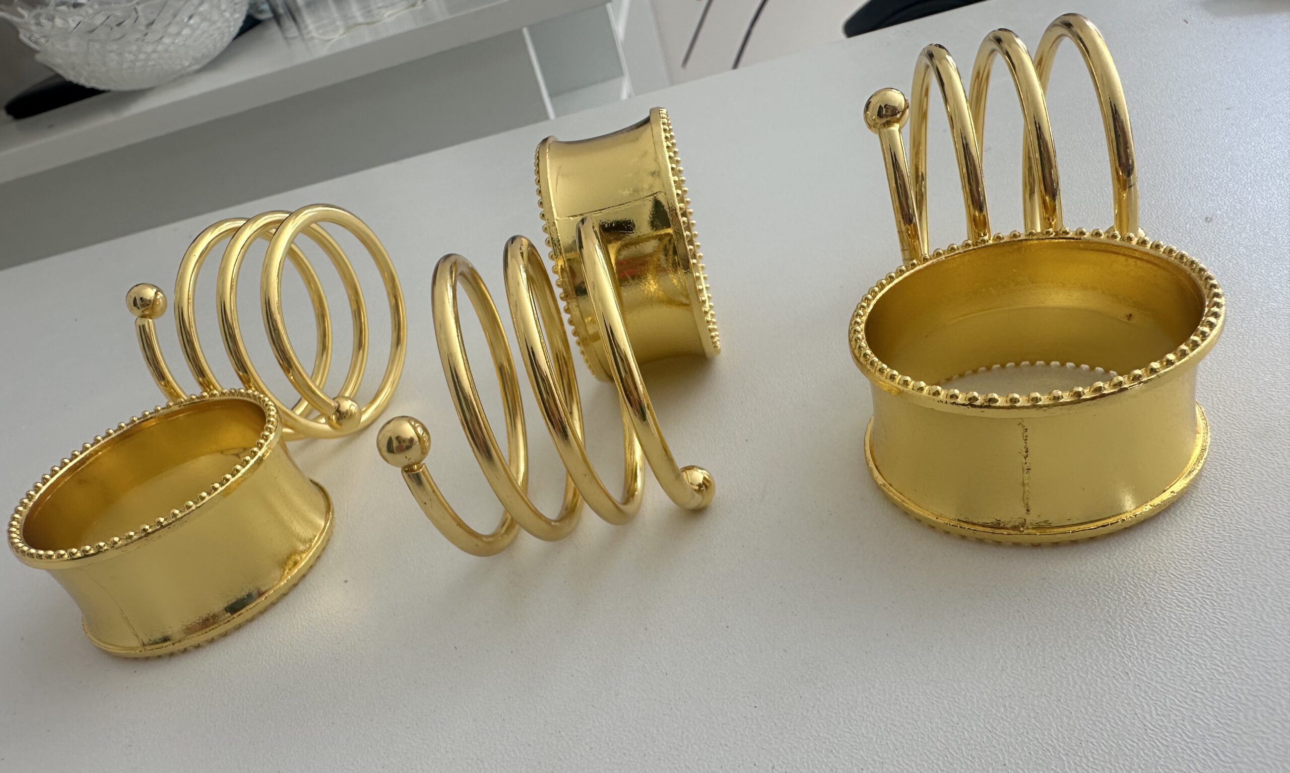 Piękny ring w kolorze złotym, który nałożony na serwetę będzie wspaniałym dodatkiem do ślubnych czy okolicznościowych dekoracji.
