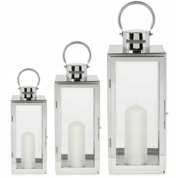 Zestaw 3 szt. latarnii metalowych srebrnych