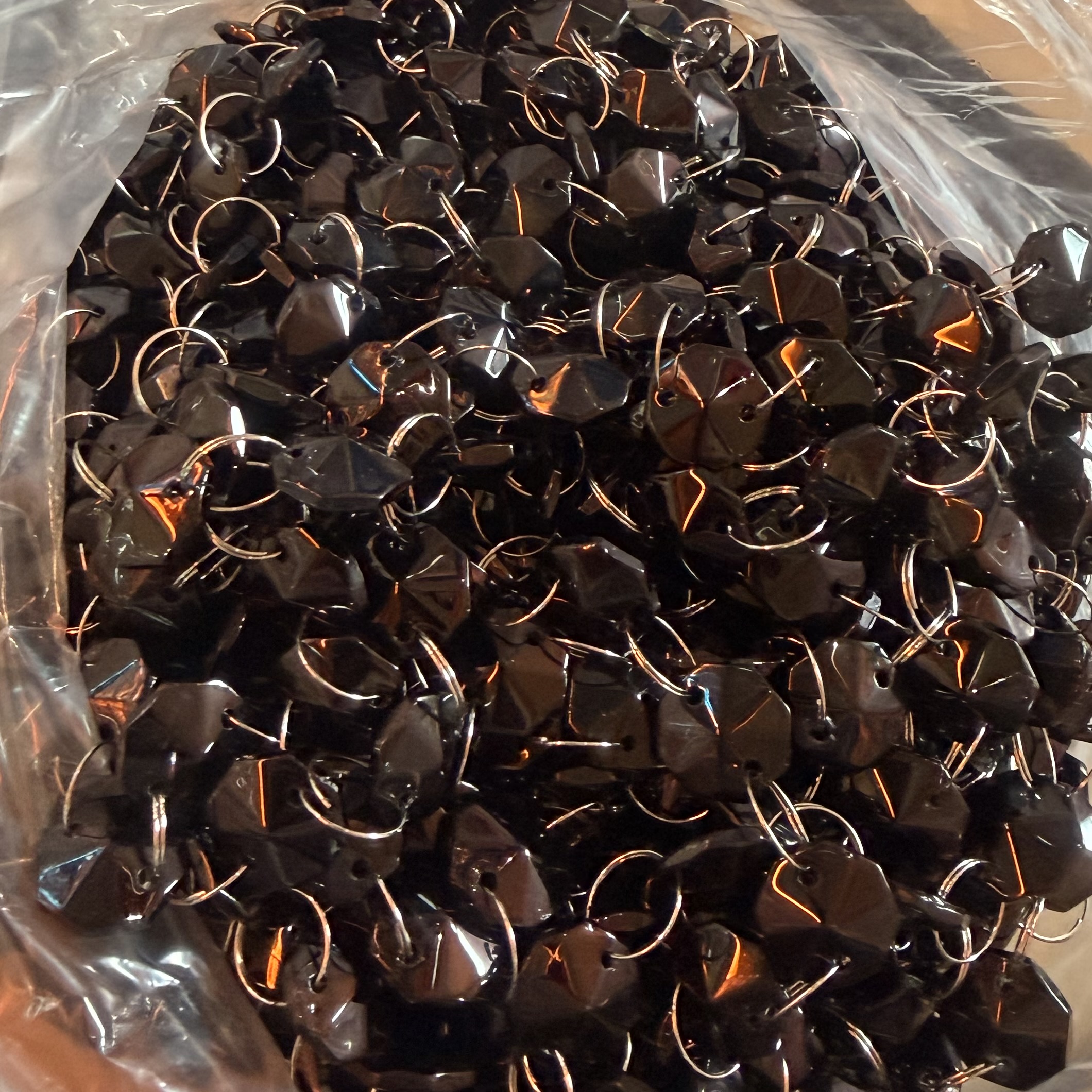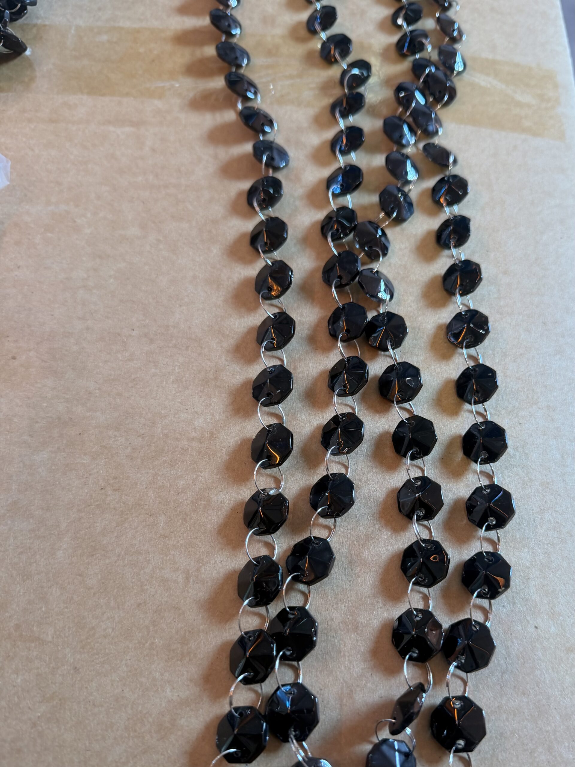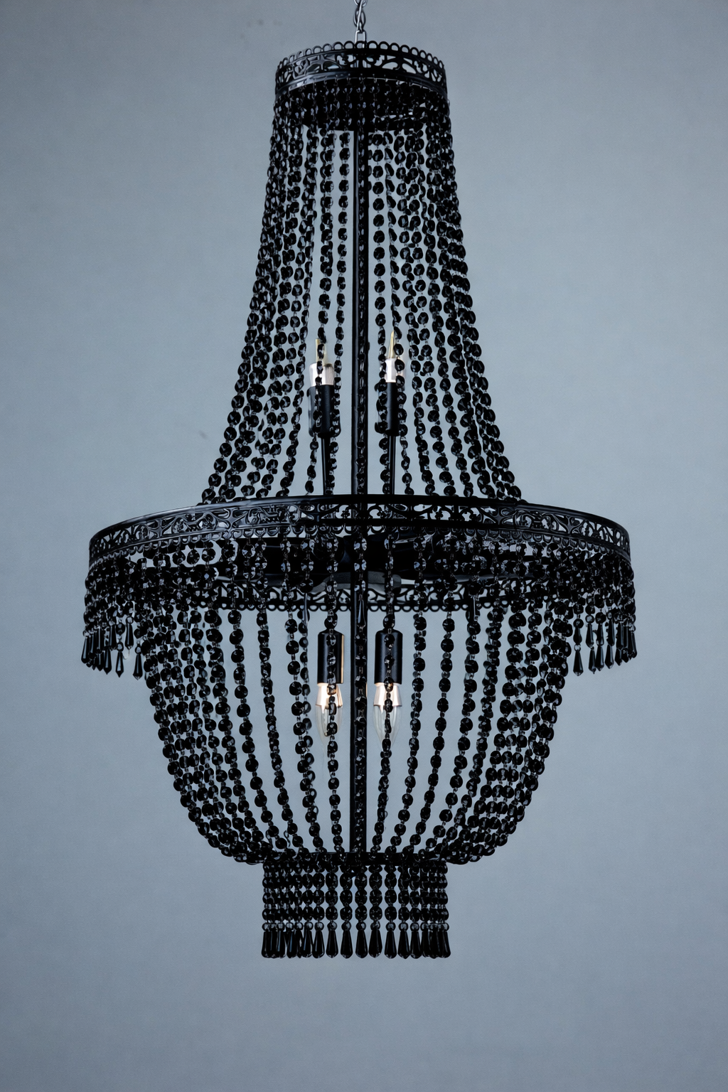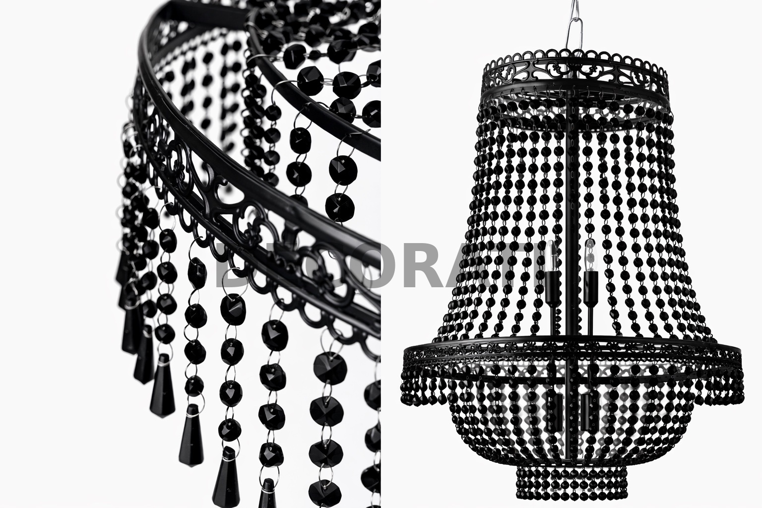 Żyrandol dekoracyjny w eleganckim czarnym kolorze z pięknymi czarnymi koralikami.