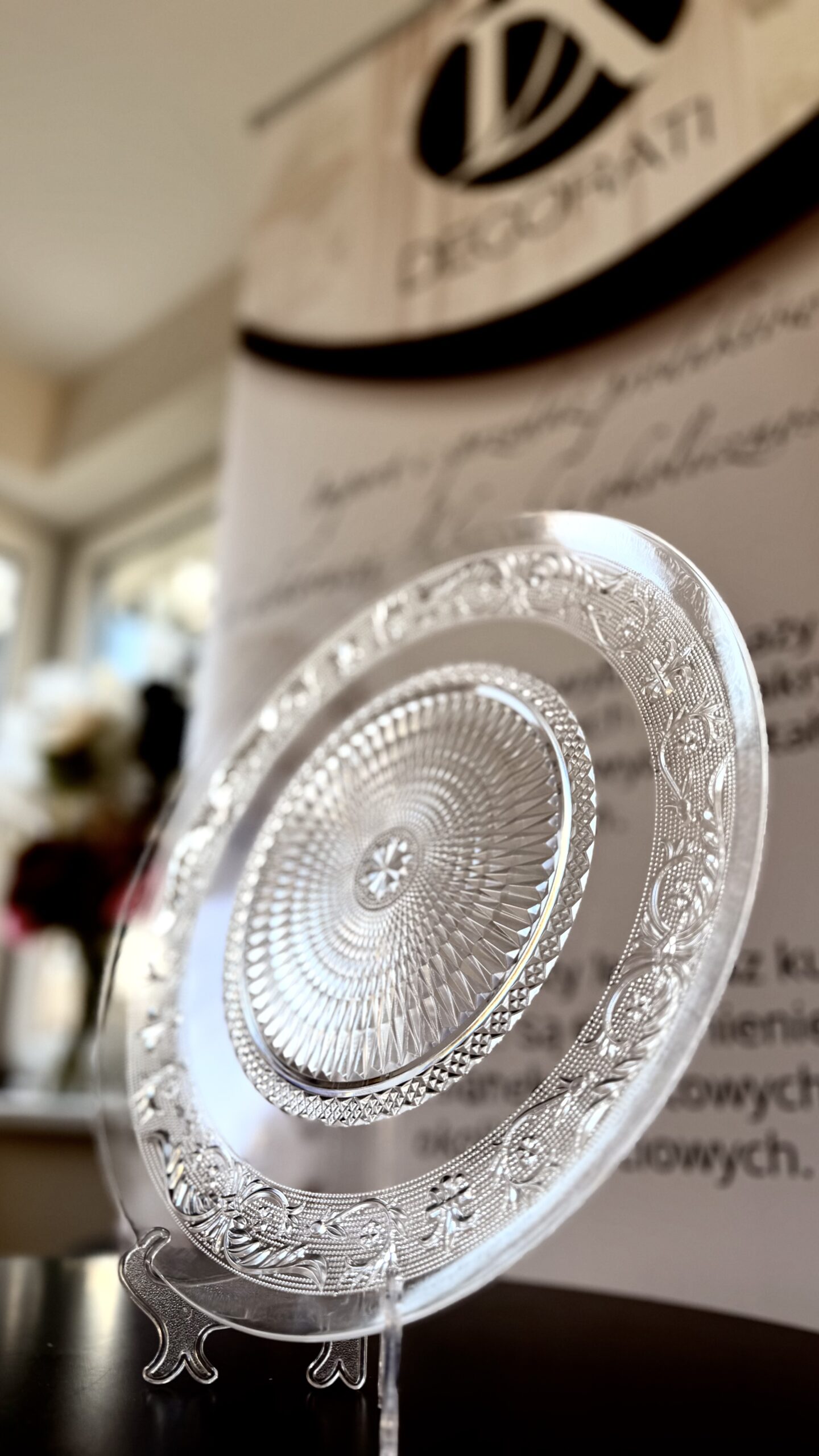 Jednym z kluczowych elementów dekoracji stołu jest podtalerz transparentny – estetyczny detal, który podkreśla oprawę całego nakrycia.