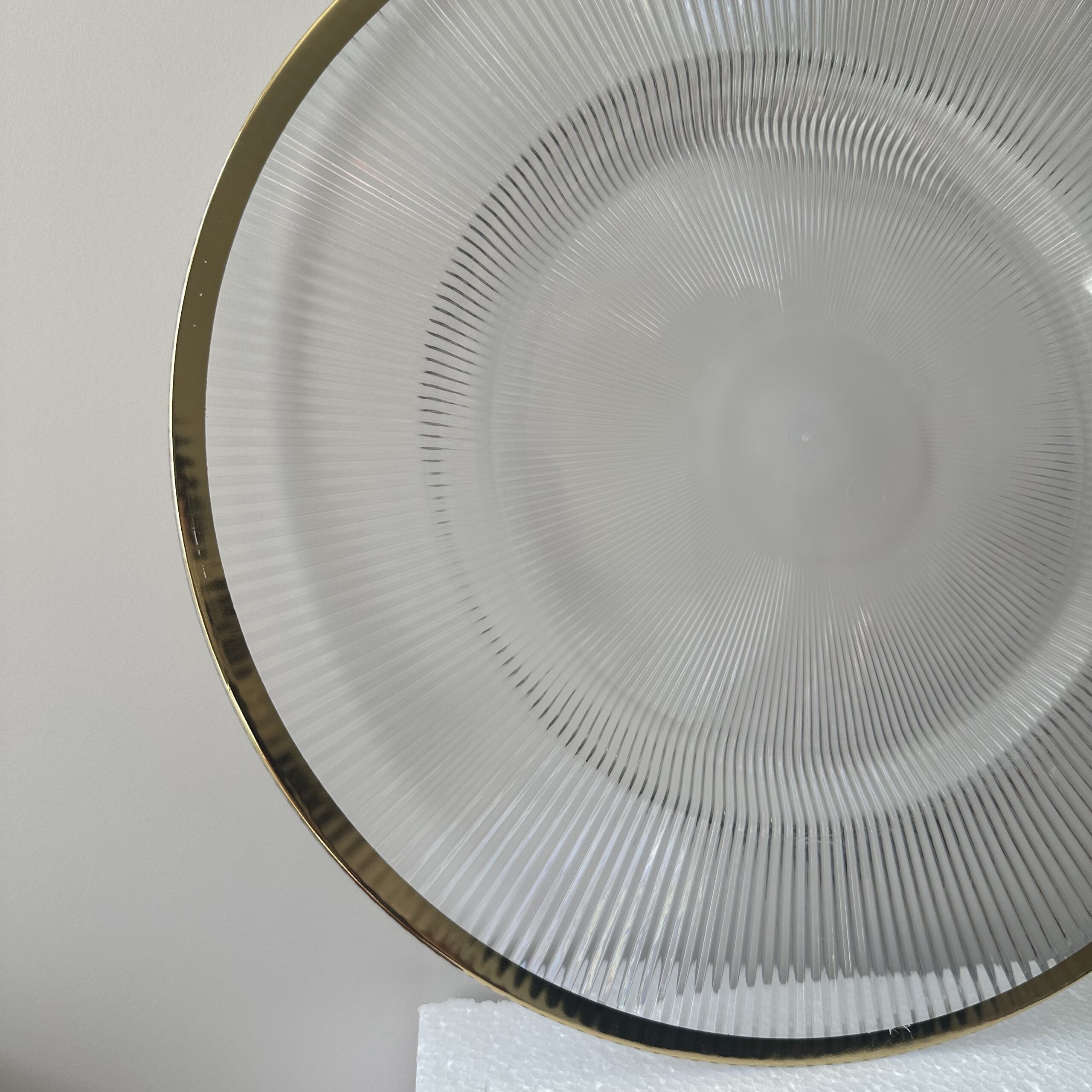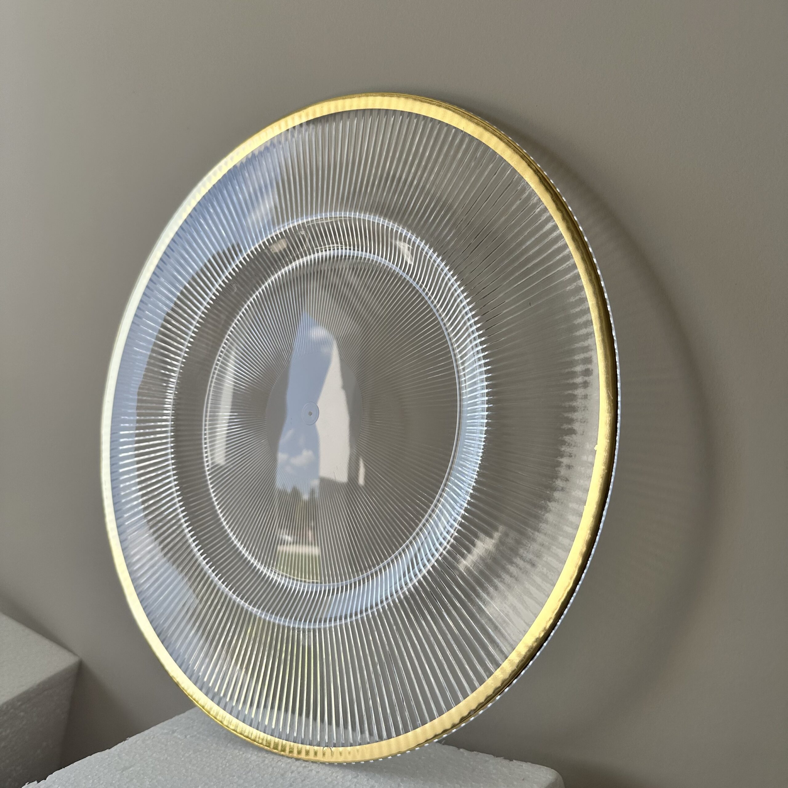 Podtalerz plastikowy transparentny karbowany ze złotym rantem 33 cm