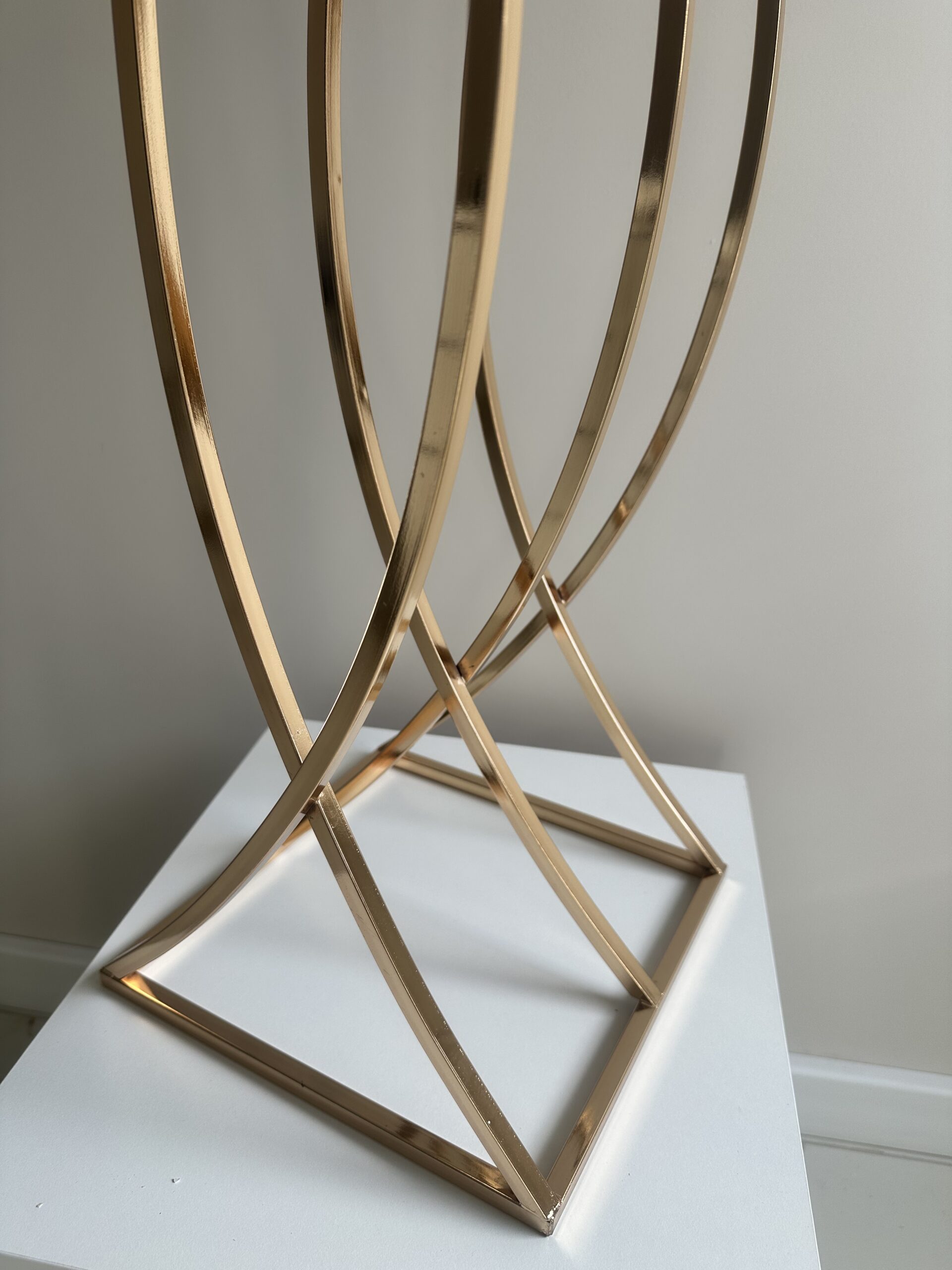 Stojak metalowy “potrójna łezka” w kolorze lustrzanego złota, to nowość wśród stojaków geometrycznych.