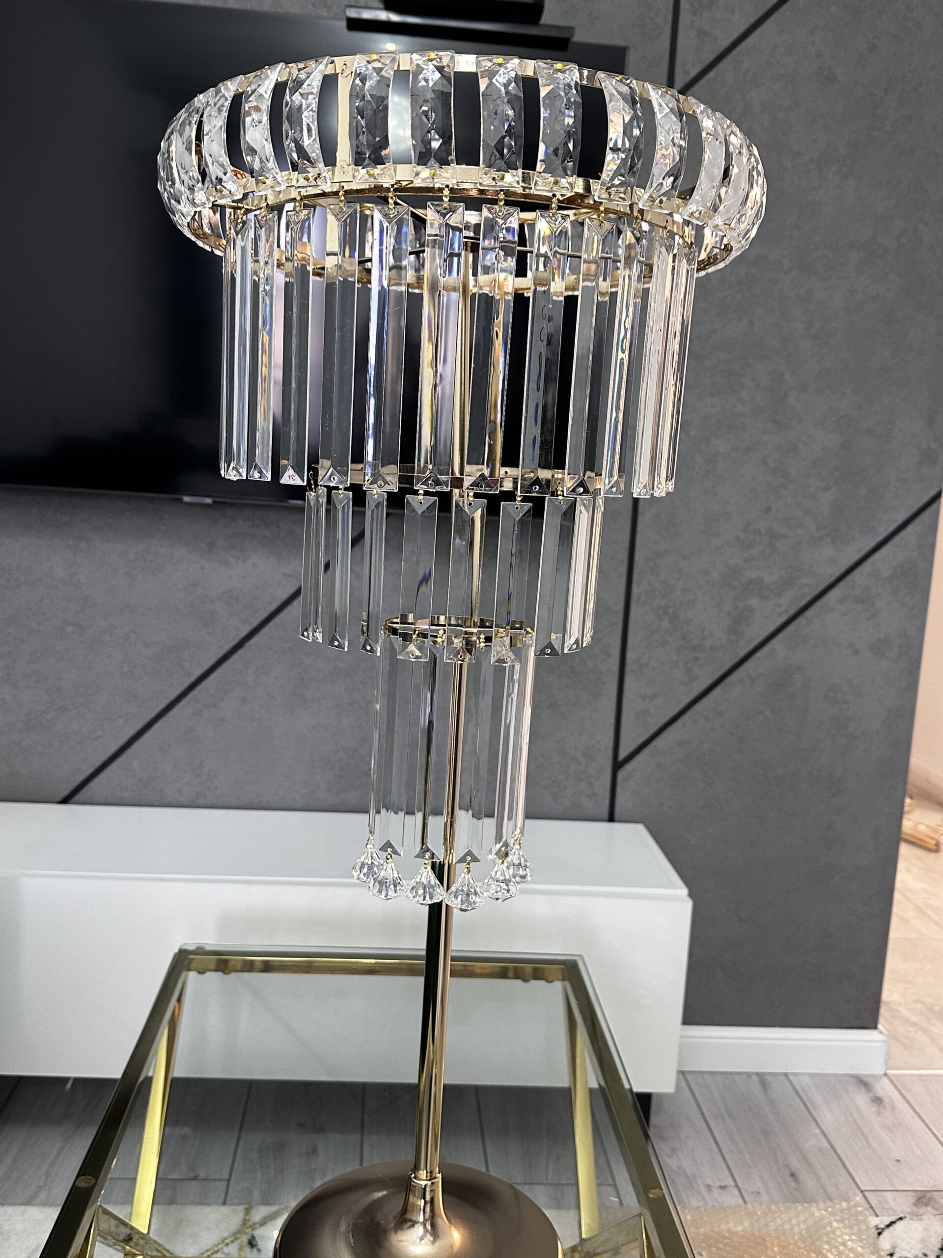 Stelaż metalowy złoty 90 cm z akrylowymi zawieszkami