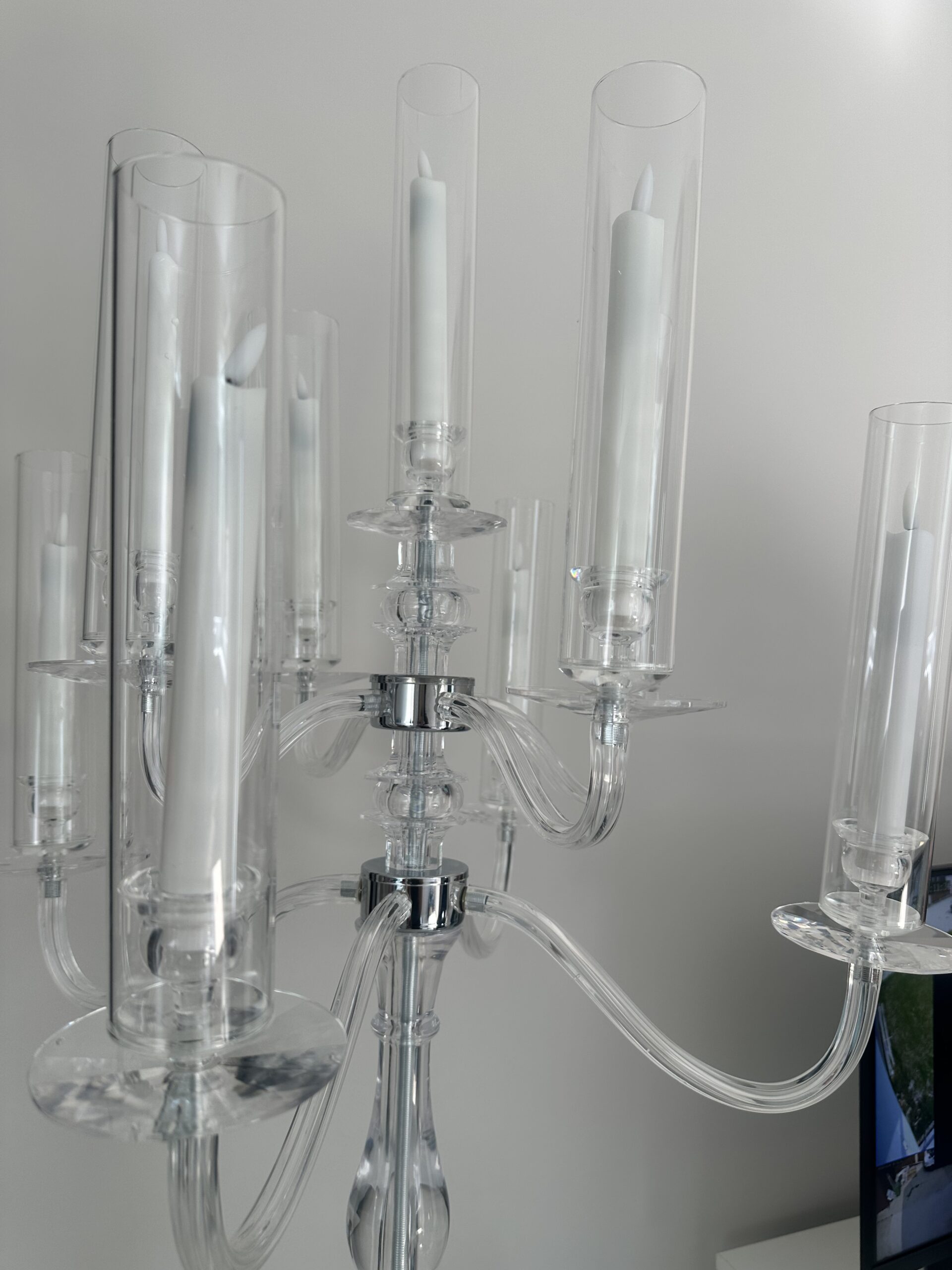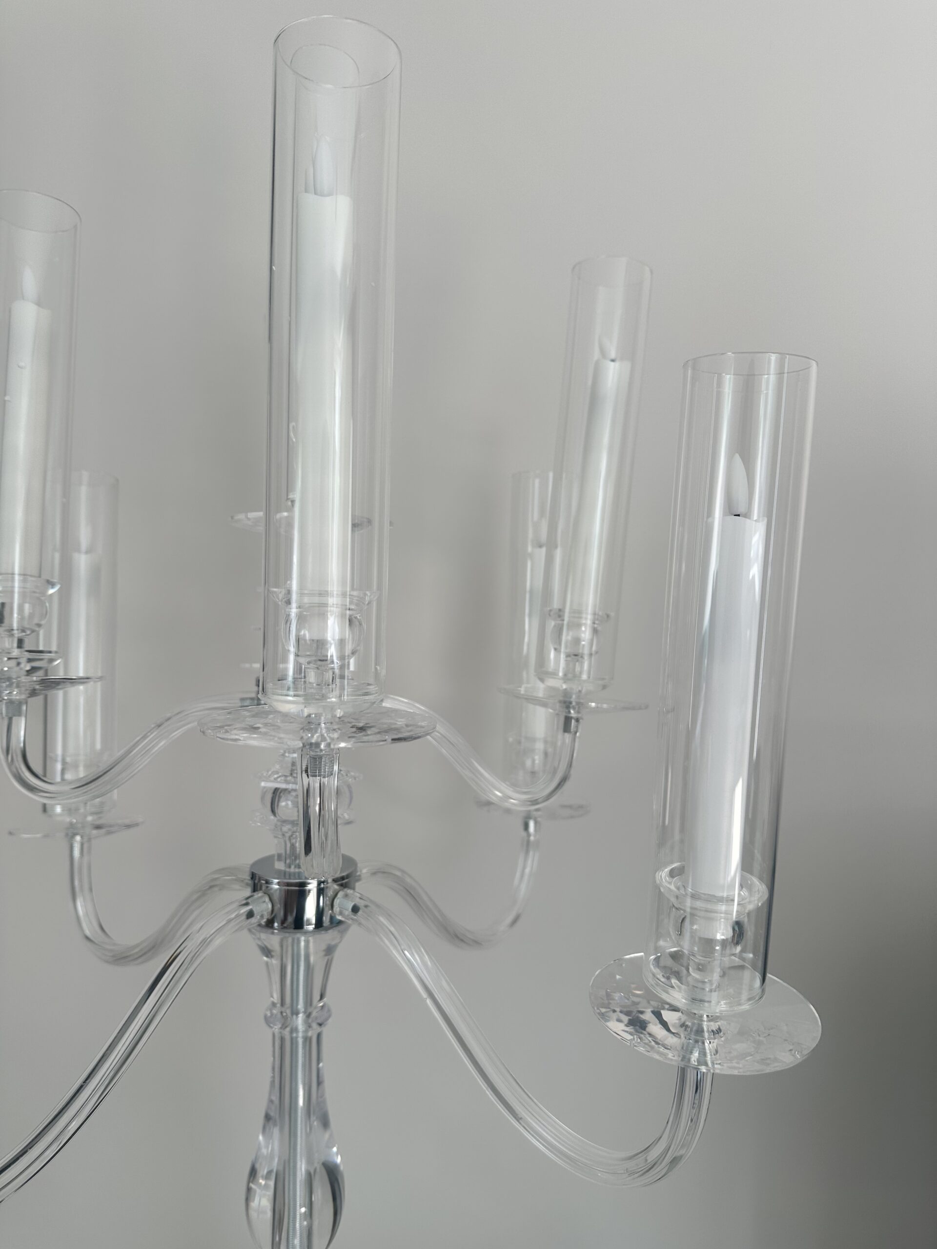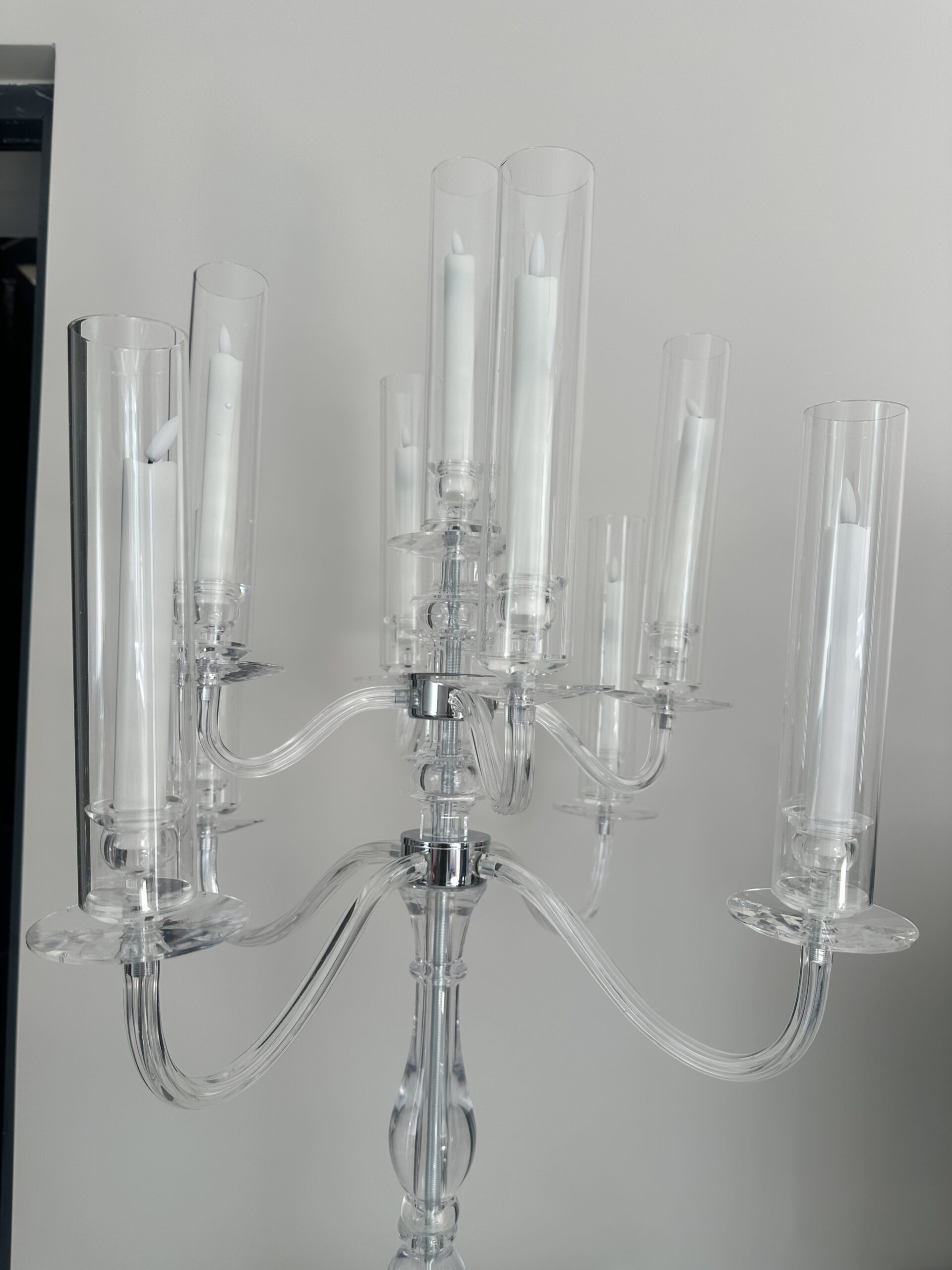Kandelabr akrylowy H95 cm 9 ramienny ze szklanymi tubami HIT !!