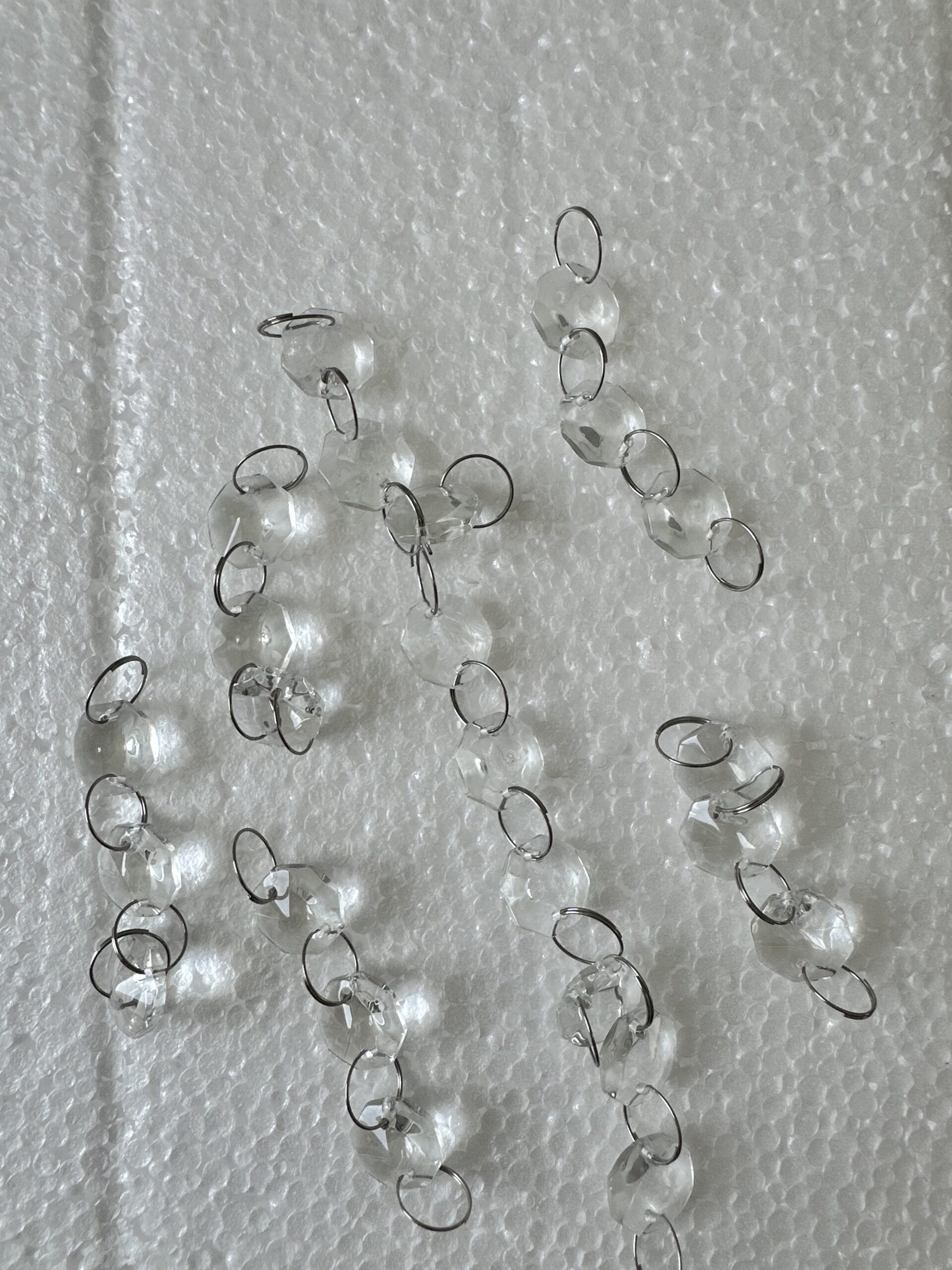 Dodatkowo do zestawu dołączone są szklane zawieszki różnej długości, które są eleganckim i delikatnym uzupełnieniem całego świecznika.