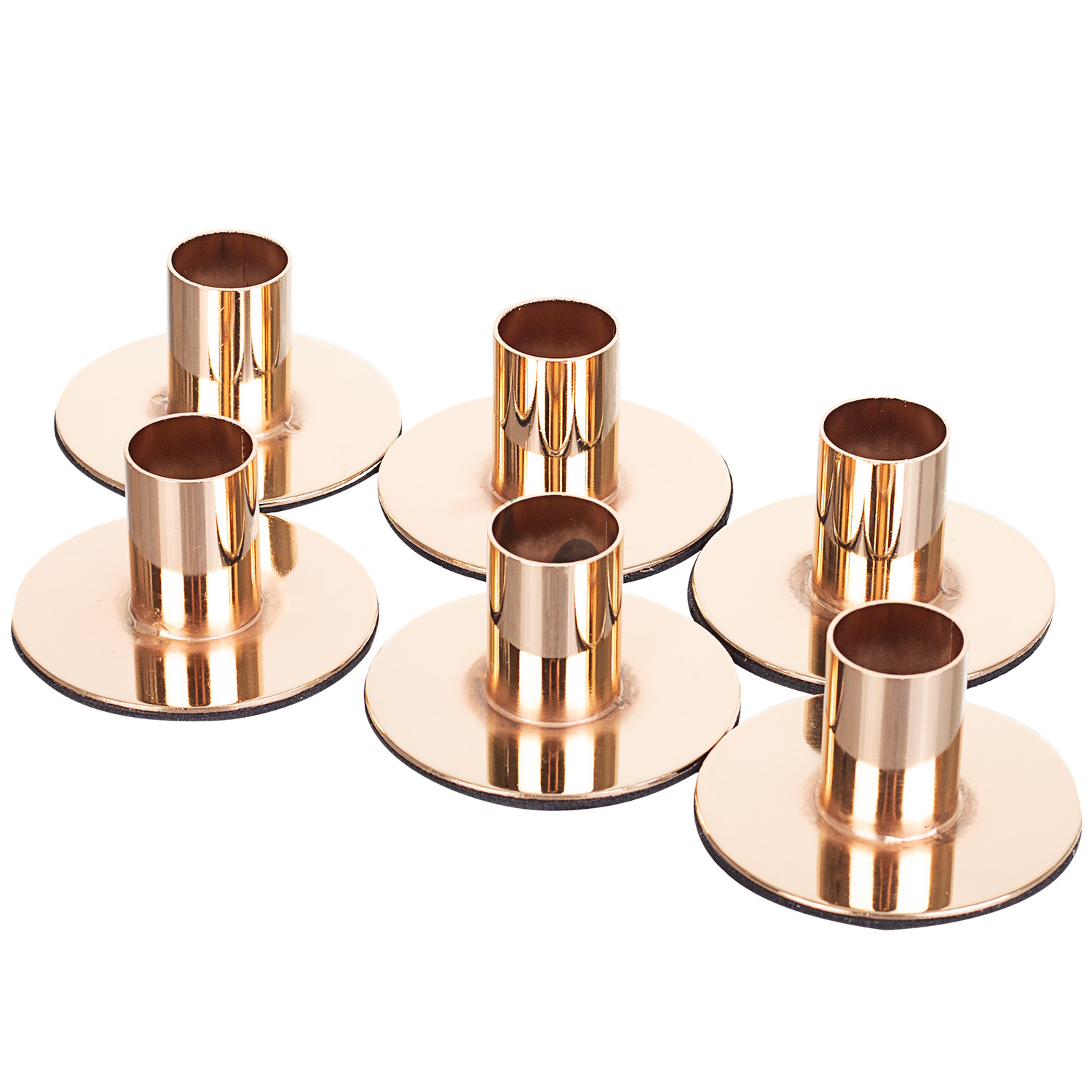 Podstawka metalowa w kolorze lustrzanego złota na wąskie świece. Pozwala na umieszczenie w niej klasycznych świec, a rant wokół podstawki sprawia, że podczas palenia świecy wosk nie spływa na obrus.