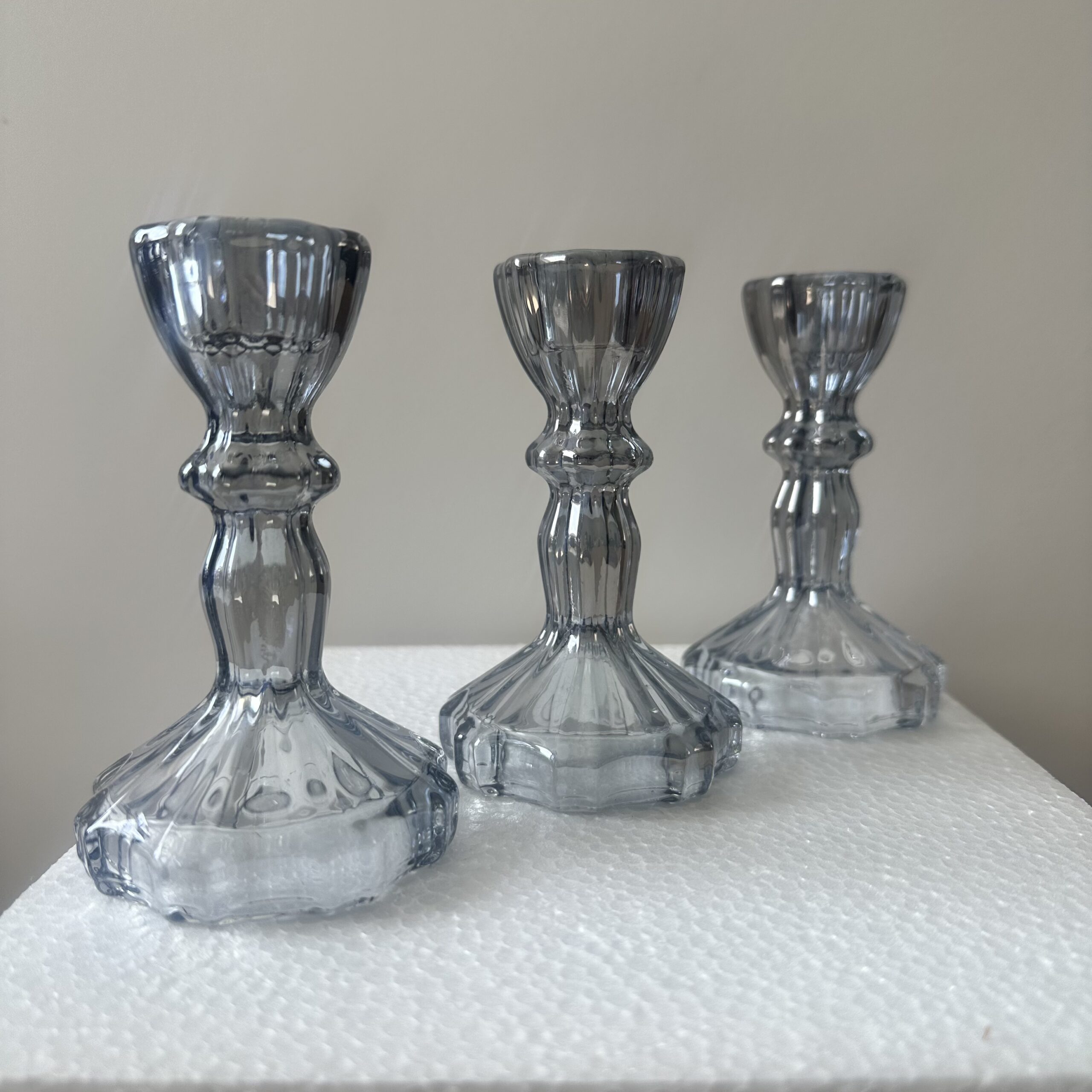 Świecznik szklany ciemne szkło na wąskie świece