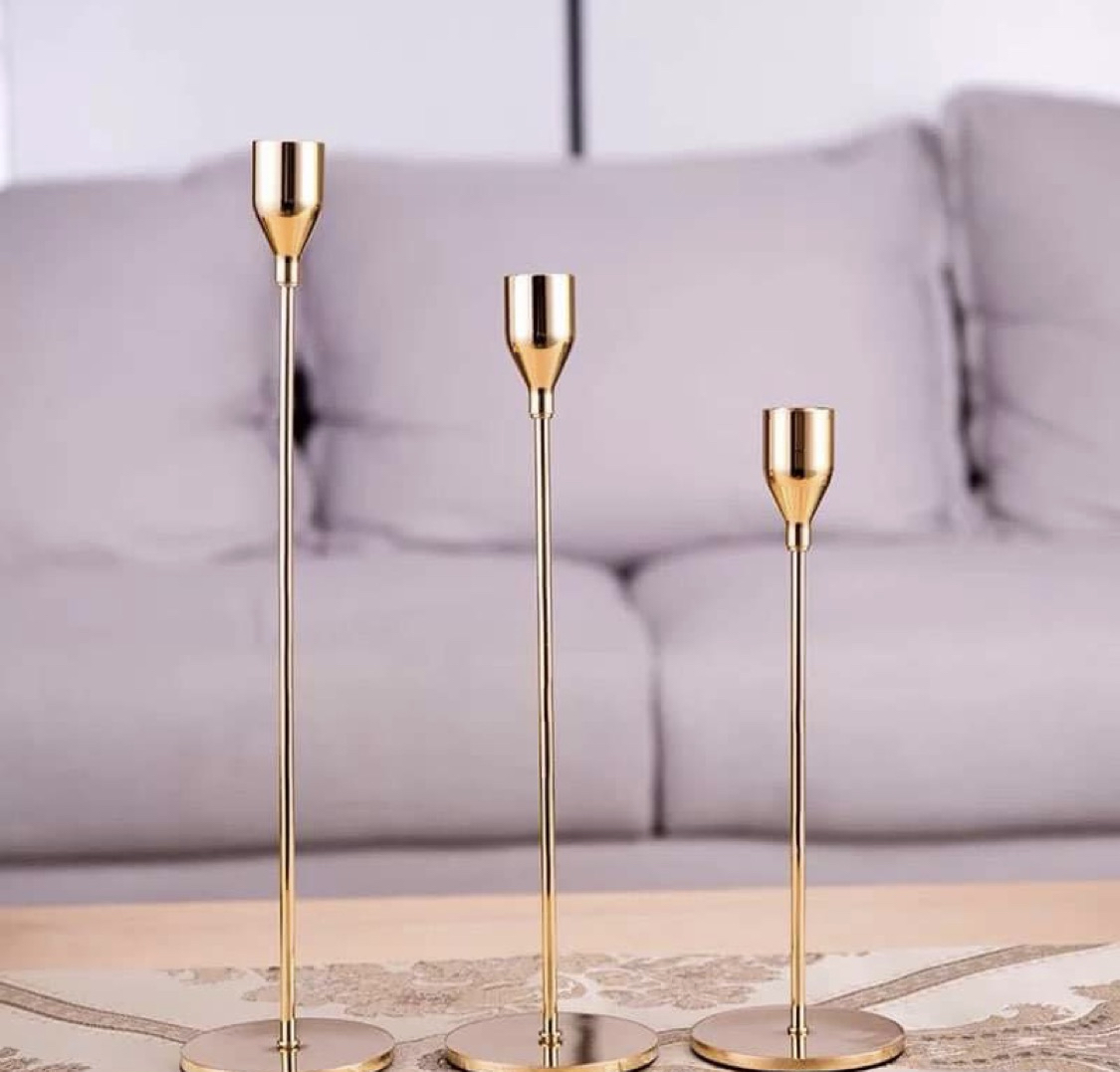 Zestaw świeczników metalowych złotych komplet 3 sztuk